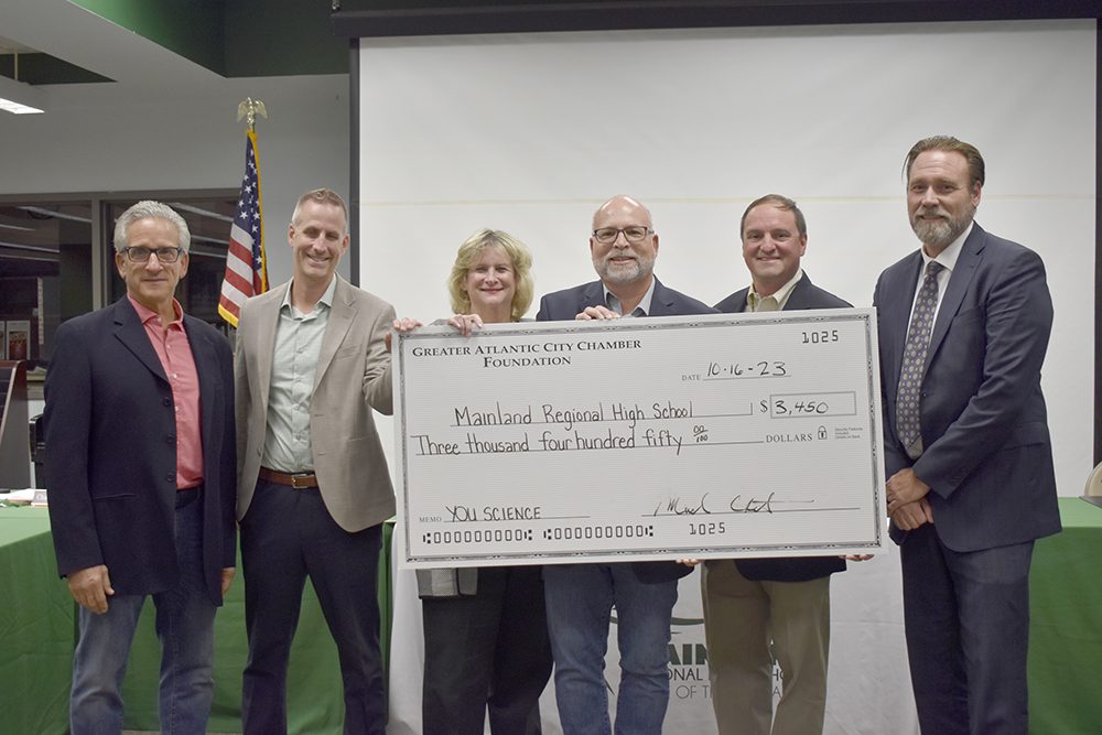 Members of the Greater Atlantic City Chamber of Commerce arrived at Mainland Regional High School to present a check in the amount of $3,450. The money will go towards funding for the YouScience test, a program aimed at connecting students, educators, and area businesses. Read more from Shore Local News.