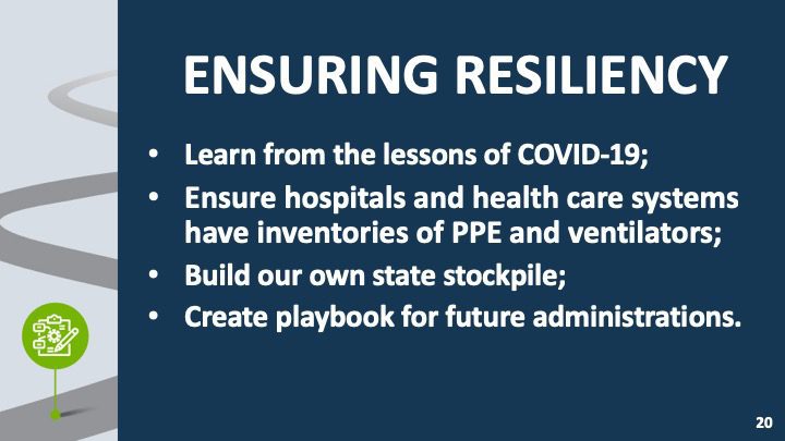 - Build our own state personal protective equipment and ventilator stockpile;