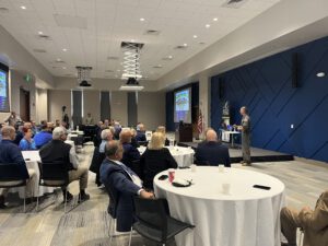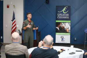 Several members of the 177th FW ANG and Key Spouse Foundation organizer, Anthony Kapurelos, joined the Chamber and its members to hear Col. Routt speak.